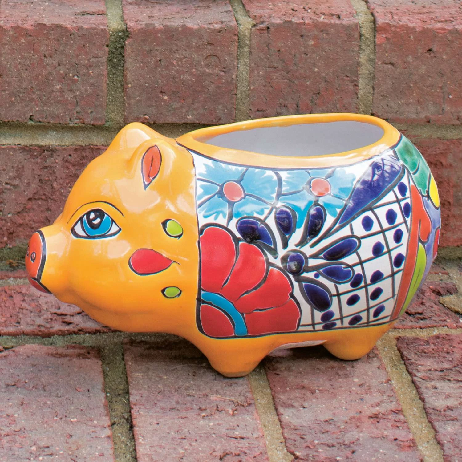 Avera Products Talavera 6 In. H X 9 In. W Ceramic Pig Planter Multicolored