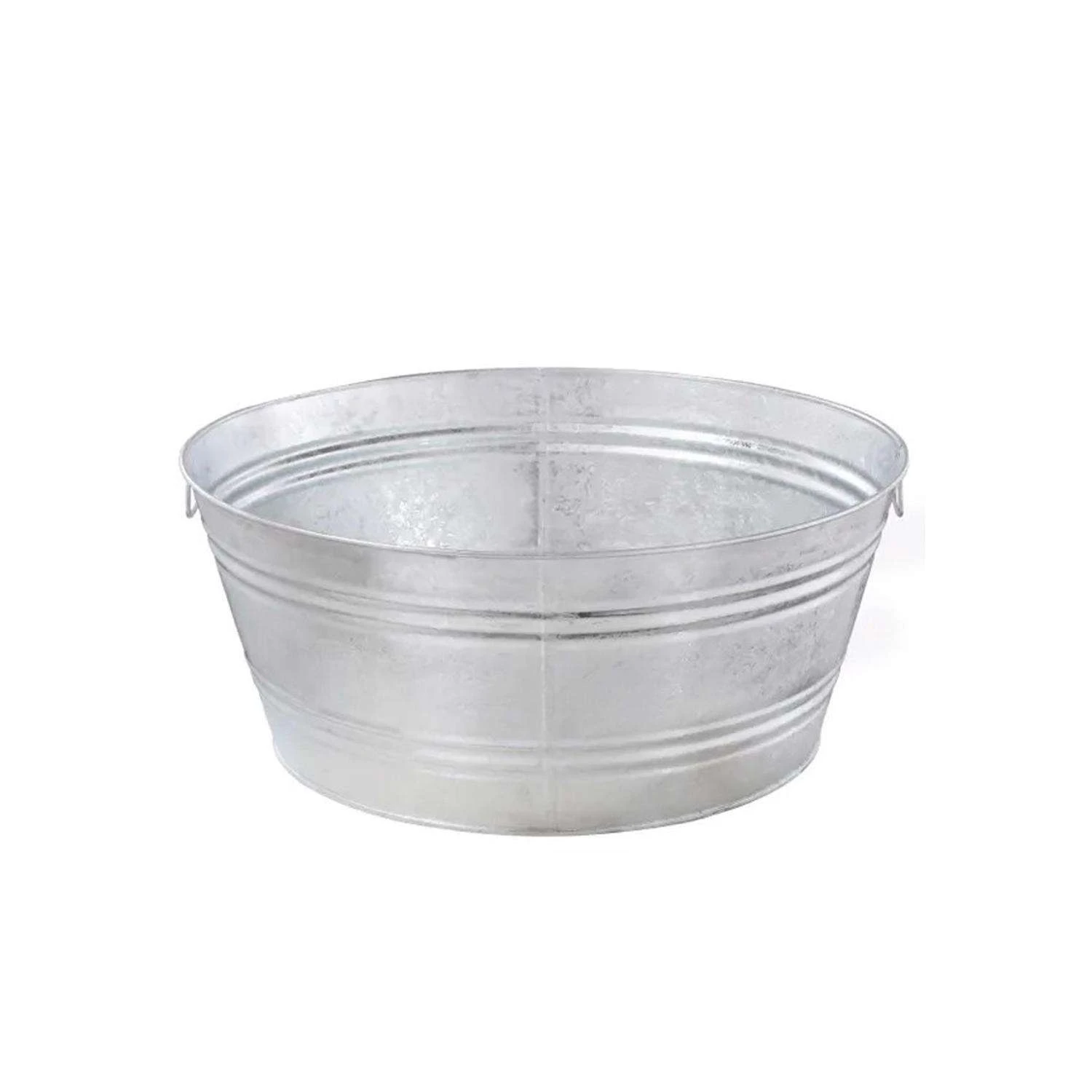 This 35 gallon round utility tub is large and perfect for pet grooming, using as a party tub or ice bucket or a classic planter. The tub is made of durable hot dipped steel, sealed to hold liquids and has a wire reinforced top rim. Stronger than plastic, this pail won’t absorb odors and is recyclable. Ideal for planters, storage, decor Rodent proof Offset bottom keeps tub off ground Wire reinforced top rim Deep swedging adds strength Weather resistant 2 handles Watertight for wet storage
