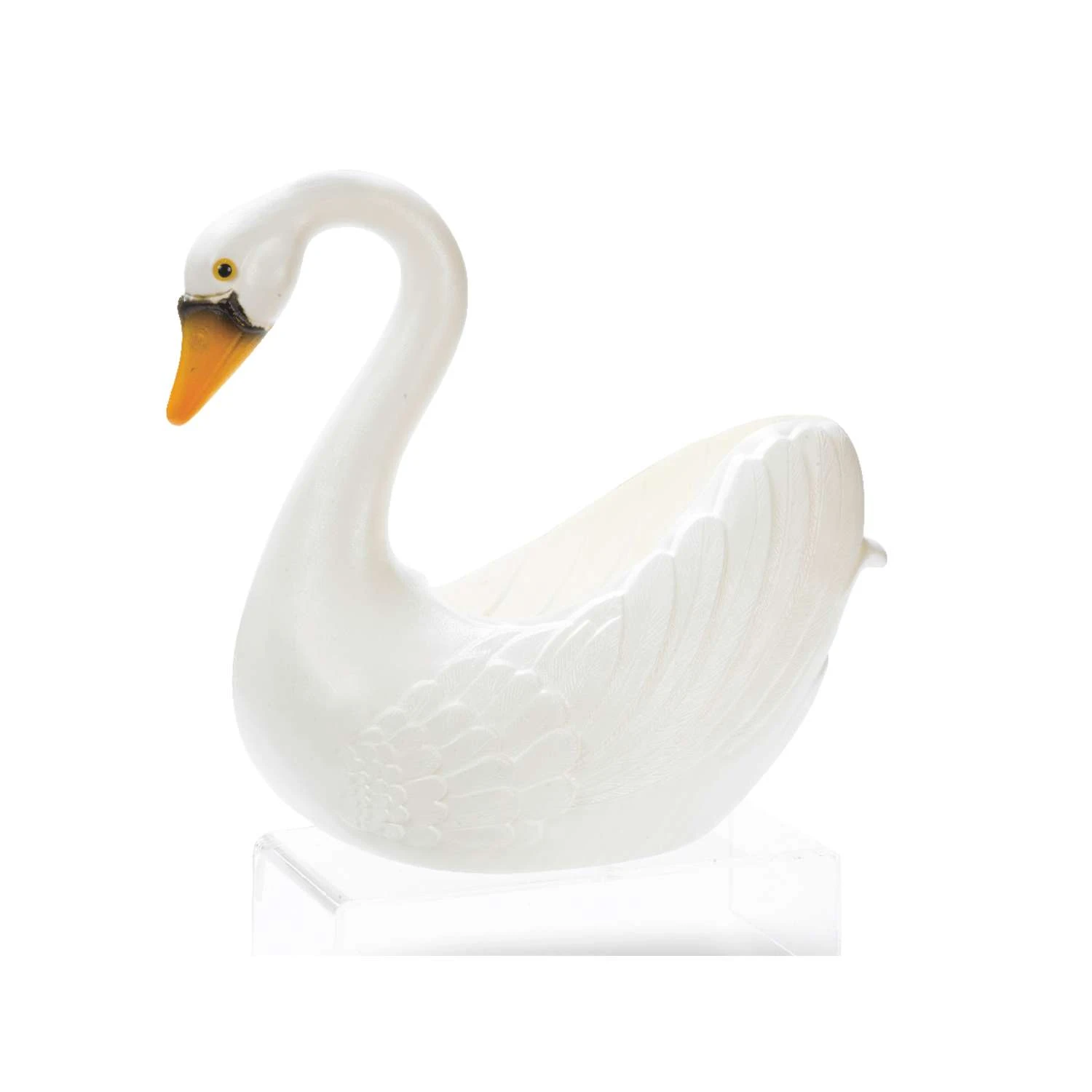 Classic White Swan with Yellow Bill. Planter has a 6.25 inch x 8.5 inch opening. Ideal for patios and porches. Blow-mold plastic Classic swan design Drain on bottom Great for yards and walkways Free standing