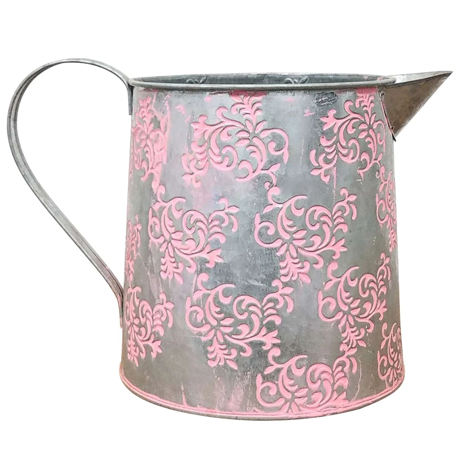 Eve’s Garden 14 In. H X 7.5 In. W X 9 In. D Ceramic Ornamental Watering Can Pink/Silver