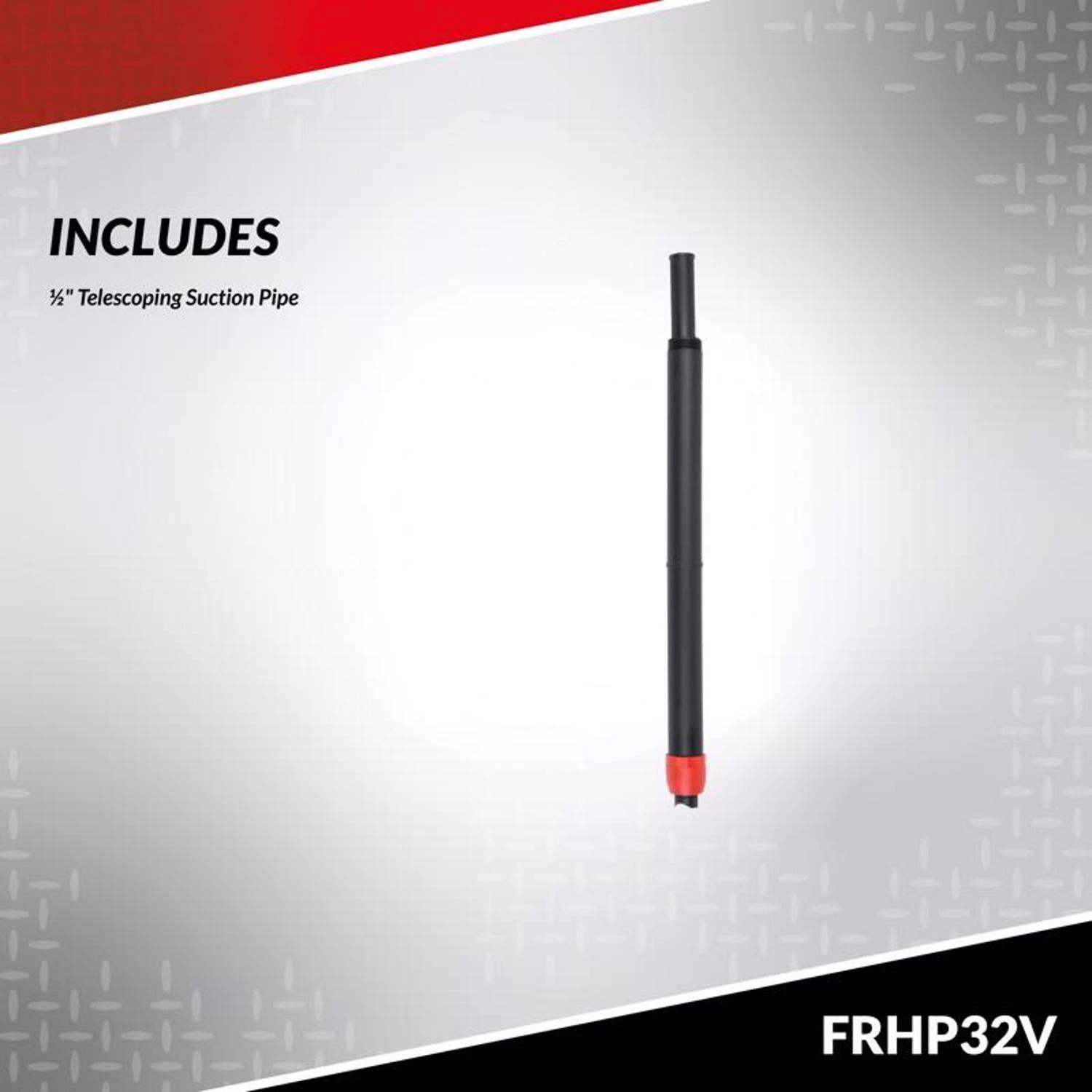 Fill-Rite’s Piston Series of hand-operated fuel transfer pumps feature tough polypropylene construction and are the ideal economical solution for low-volume, drum, chemical transfer. * The FRHP32V model is a hand-operated, economy chemical transfer pump that delivers 11 oz. per stroke. This pump and accessory bundle comes complete with a suction pipe and installation components. Polypropylene Construction – rugged polypropylene body resists corrosion in demanding chemical and industrial applications Economical Solution – reliably transfers 11 oz. per stroke from 55-gallon drums in low-volume transfer applications Air-Operated – seamlessly hook up the existing air lines in your garage or shop for a quick fluid transfer solution Flexible Fluid Compatibility – compatible with a wide variety of fuel, oil, and chemical fluids
