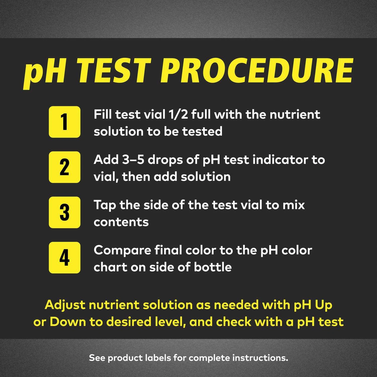 General Hydroponics pH Control Kit accurately and efficiently measures the pH levels of your nutrient solutions, grow reservoirs, and the rest of your hydroponic system. pH control is essential for vigorous plant growth. Nutrient solution pH that is too high (basic), or too low (acidic), cannot be properly absorbed by plant roots. Incorrect nutrient solution pH can cause slow growth, sickly plants, and low yields. But General Hydroponics pH Control Kit is here to help. The kit contains everything you need to test pH levels and make adjustments so you can easily monitor and manage pH levels throughout your hydroponic grow. Kit includes: 8 oz. pH Up, 8 oz. pH Down, 1 oz. test indicator, a test tube, eyedropper, and pH Level Chart. To maximize plant growth, the pH level of your nutrients should be slightly acidic. Experienced growers consider the ideal pH for most crops to fall between 5.5 and 6.5. General Hydroponics pH Control Kit contains everything you need to measure pH levels of your hydroponic grow reservoirs RELIABLE RESULTS: The streamlined testing system delivers fast, accurate, and easy-to read results every time ALL-IN-ONE KIT: Includes 8 oz. General Hydroponics pH Up Liquid, 8 oz. General Hydroponics pH Down Liquid, 1 oz. Test Indicator, test tube, an eyedropper, and a pH level chart THE PREFERRED WAY OF TESTING pH: Seasoned growers prefer our pH Test Kit to expensive electronic meters because of its reliability and ease-of-use EASY TO USE: To use, simply fill a test tube halfway with nutrients, add a few drops of pH test indicator, and observe the coloration of the liquid; recommended pH for most plants is 5.5 to 6.5