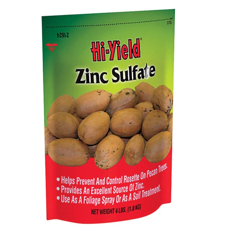 A dry formulation of zinc for application around fruit trees. Corrects deficiency that causes deformity of fruit, prevents and corrects rosette on Pecans. Provides an excellent source of zinc Use as a foliage spray or as a soil treatment Foliage spray 1 tablespoon per 3 gallons Soil treatment 1-3/4 lbs. per inch of diameter