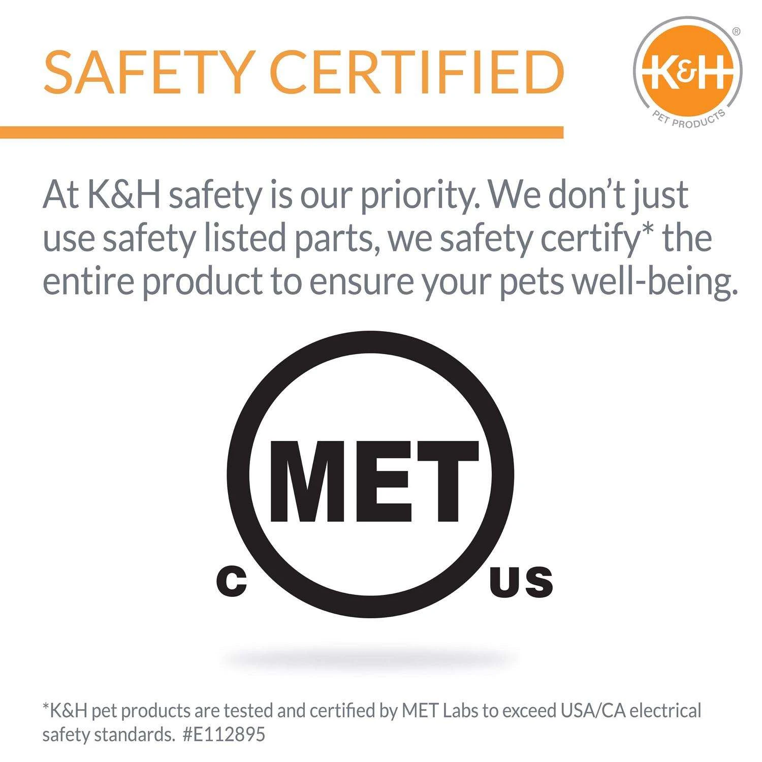 The K&H Pet Products Universal Deicer 80-Watt is the most universal, thermostatically controlled water deicer on the market. Keeps water available ice-free in the winter months for all animals pets. It can be used with aluminum plastic poultry waterers, dog bowls, buckets, birdbaths, small fountains other water receptacles. The bottom is sealed to prevent unwanted pests from nesting. 5.5-foot cord molded handles make lifting positioning the unit convenient. 80W. This deicer is tested certified by MET Labs and exceeds USA/CA electrical safety standards. K&H doesn’t just use safety listed parts; we safety certify the entire product. Designed by K&H with Over 20 years of experience in creating safe, innovative, quality products for pets. Two-year limited warranty. Designed to automatically turn on and off as needed to keep water thawed, yet not hot, even in sub-zero temperatures Can be used with virtually any waterer, bowl, bucket, and more; just be sure to place it where it will be protected from wind Sealed bottom to protect electronics and handles on the side for easy moving