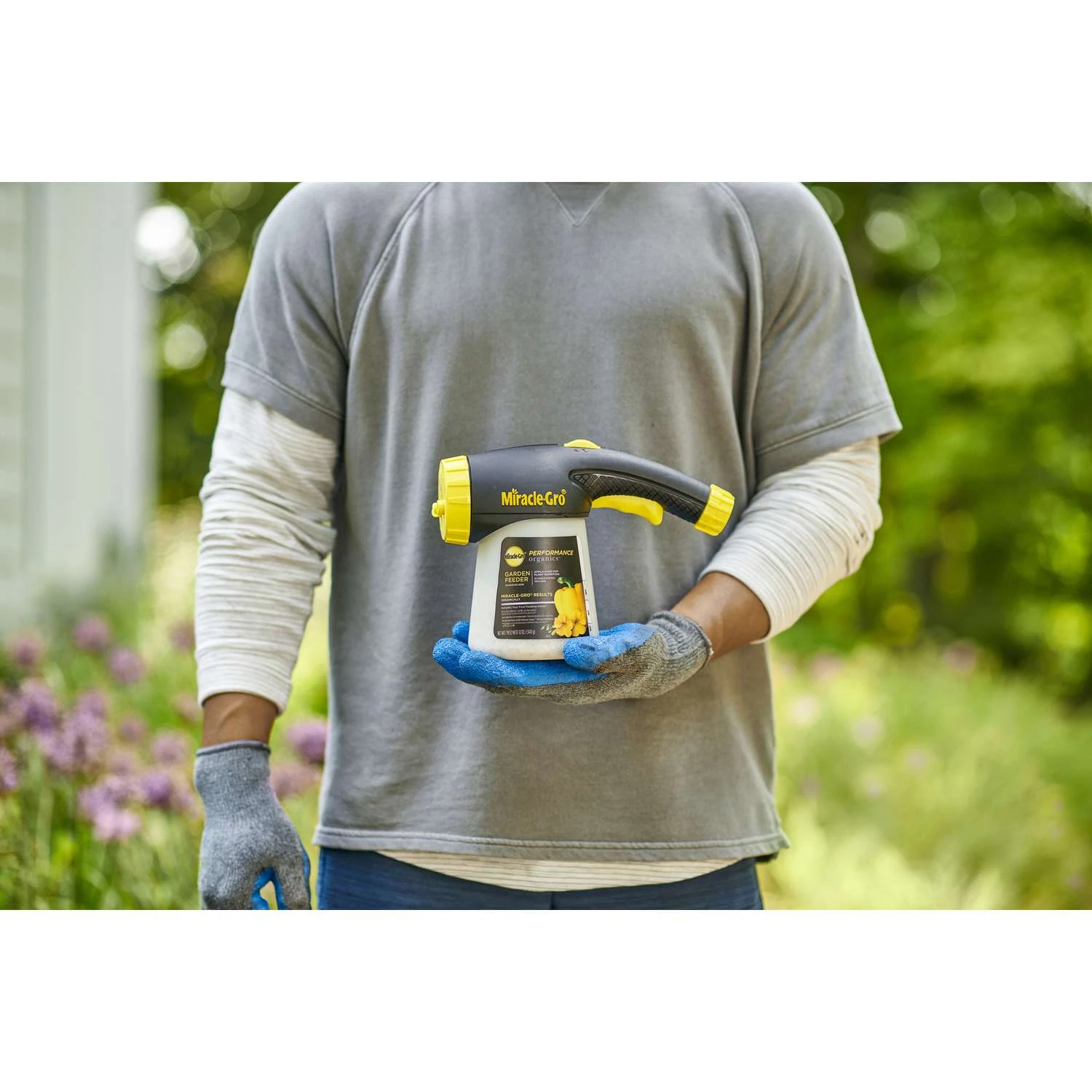 Astonishing results, every time – that has always been the Miracle-Gro mission. Miracle-Gro Performance Organics Garden Feeder delivers the Miracle-Gro results you expect with the ingredients you want. What does that mean for you. More bounty – vegetables, flowers and herbs – organically (vs. unfed plants). Feeds instantly and enhanced with micronutrients for high performance results. It’s easy to use, attach hose to the sprayer and discover how easy it is to feed your plants while watering Jug is made from 25 percent recycled plastic Do not use with insecticides, herbicides, fungicides or other brands or types of plant food The Miracle-Gro Performance Organics garden feeder includes a first feeding of Miracle-Gro performance organics all purpose plant food nutrition