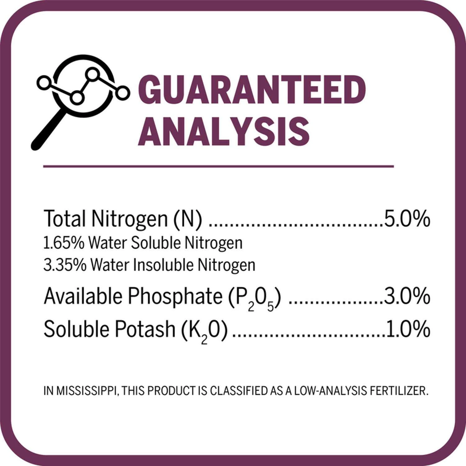 | Fertilizer Analysis (N-P-K) | 5-3-1 |
