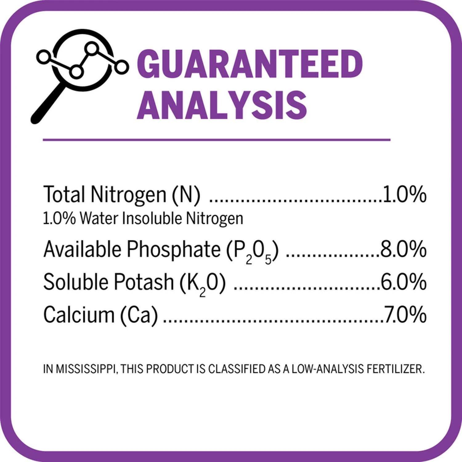 | Fertilizer Analysis (N-P-K) | 1-8-6 |