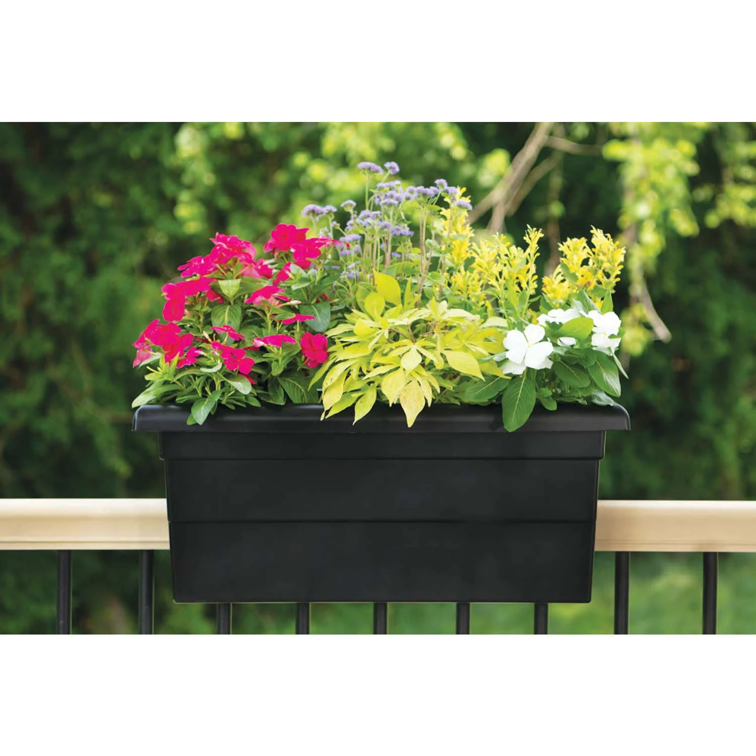 Novelty 10 In. H X 12 In. W X 24 In. D Plastic Countryside Over-The-Rail Deck Rail Planter Black