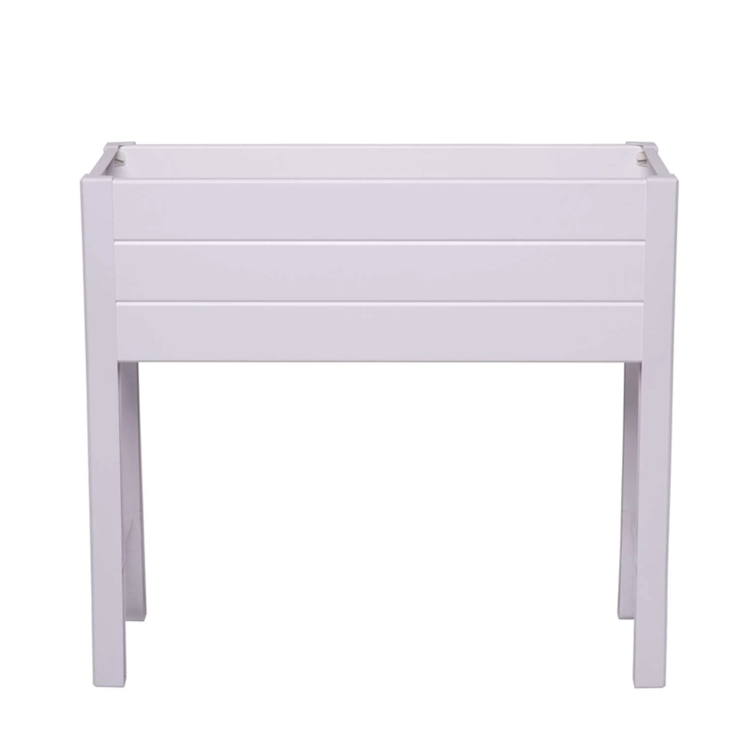 Elevated garden bed. 35.5 inch L x 15 inch W x 32 inch H x 10.75 inch D. White polymer construction with woodgrain panel texture. BPA FREE Certified safe for growing edible plants. No Tools Required! Easy to clean 11 in. depth to grow vegetables, herbs or flowers Maintenance free polymer construction Space saving, egonomic design for less bending and kneeling while gardening Ideal size for patios, balconies and decks Made of durable UV resistant white vinyl material it will not rust, rot or mold