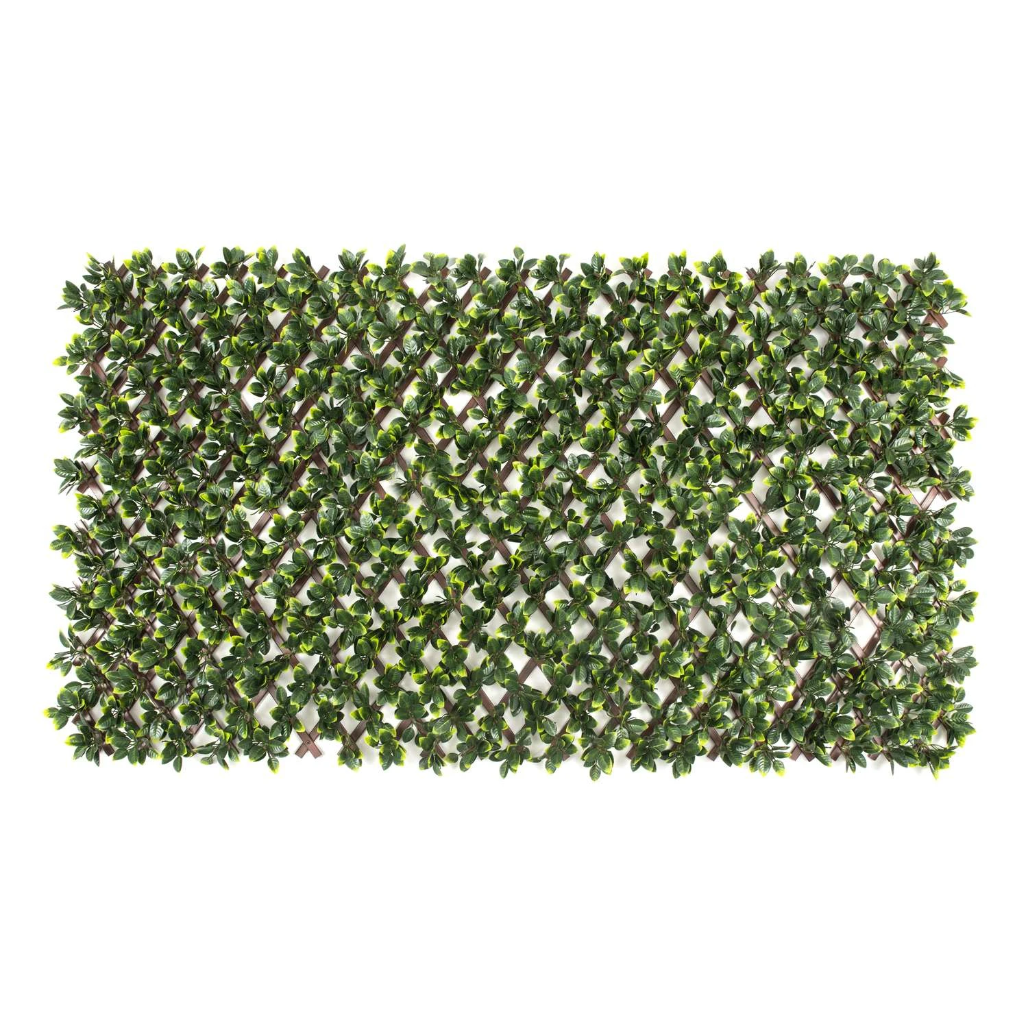 36” x 72” Gardenia Leaf Expandable PVC Trellis.Nature Decor’s Priva Hedge is an easy-to-install privacy screen. This expandable trellis with faux foliage features a lightweight and durable framework constructed from genuine willow branches. Leaves are made of high-quality UV-resistant LDPE (Low Density polyethylene) The trellis size varies depending on the adjustment. The fence can be installed by simply securing to a support and extending the trellis to the desired width and height. Simple, instant Privacy Ideal for vamping up the look of your space indoors or outdoors Easy to clean, little-to-no upkeep required UV-protected leaves