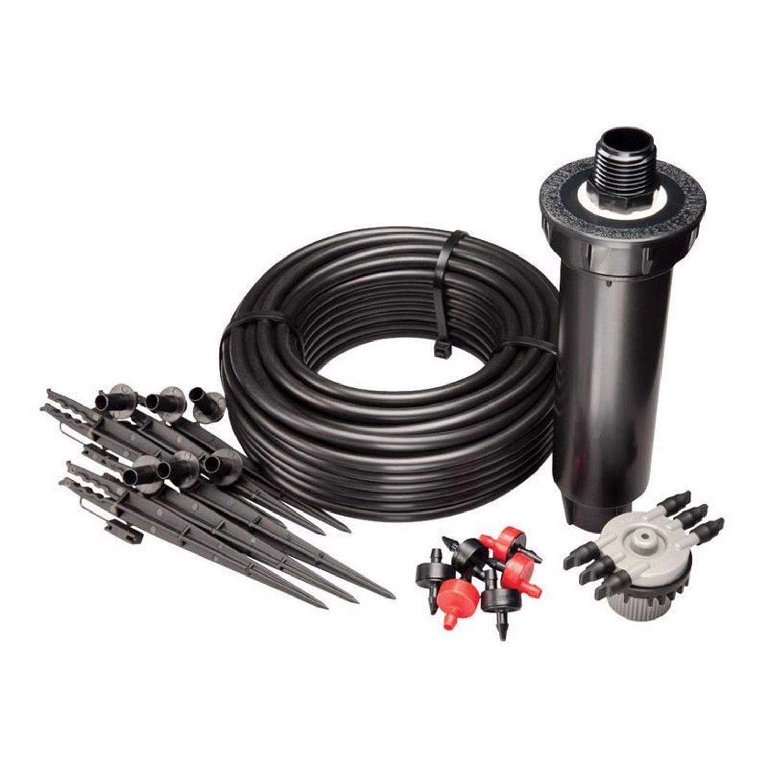 | What's Included | 6 Port Manifold, 1800 Retro Sprayhead with Filter and Pressure Regulator, 50 ft. 1/4 in. Distribution Tubing, Cut to Length, 6 Bug Caps allow Flow and Prevent Insects from Entering, 6 Stakes to direct Flow at each Plant, (3) 1.0 GPH and (3) 2.0 GPH Drip E |