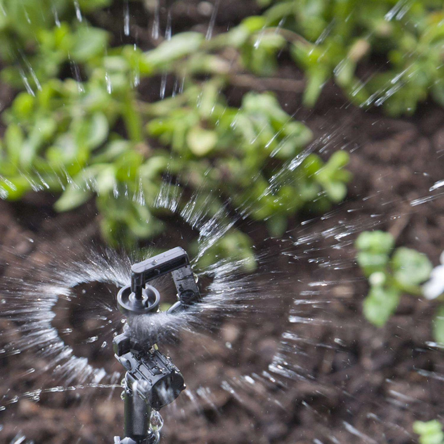 Need to water ground cover, germinate seeds, or water hillsides? The Micro Sprinkler is the answer. Setting it up is a snap with the Micro Sprinkler Assembly-it includes a sprinkler, riser, and heavy-duty stake, all preassembled and ready to connect to 1/4 in. supply tubing. This non-adjustable sprinkler with rotary spray emits water in a full-circle pattern at up to 23.9 GPH with a radius of up to 8.8 ft. (at 15-50 PSI). The Micro Sprinkler, also known as a Micro Sprayer, is made of polyethylene treated with UV inhibitors. Releases water with a rotary spray in a uniform, full-circle pattern; Ideal for watering groundcover, flower beds, planting beds, vegetable gardens, and new plantings for germination Spray reaches up to 8.8 ft. radius at 15-50 PSI; Discharge water up to 23.9 GPH at 15-50 PSI Sprinkler, riser, and heavy-duty stake come preassembled; attach 1/4 in. supply tubing to inlet on stake; Rotary spray micro sprinkler releases water in a full-circle pattern Micro sprinkler, 4 in. riser, and 8 in. stake with inlet come preassembled for a quicker install; Discharge rates up to 23.9 GPH, radius up to 8.8 ft. (at 15-50 PSI) Raindrip stands by their product and gives a 1-year, 100% satisfaction guarantee. If your product breaks, Raindrip will send you a new one for free, just pay shipping and handling