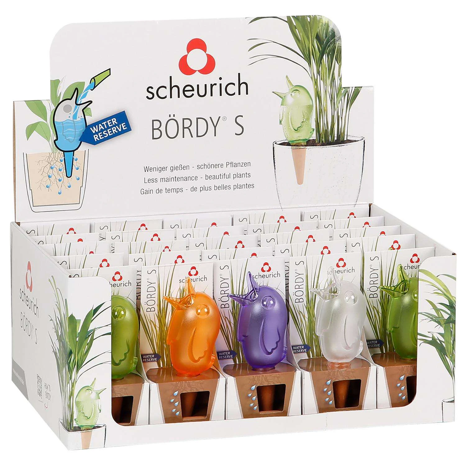 This cheery little bird is not only effective, but it makes its mark as decor too whether that be indoors or outdoors. 3 oz. Bordy water reserve with display. Bordy is the lovable watering device made of UV-resistant, translucent plastic Keeps plants moist for up to 15 days Ecoprofit and ISO certified Prevents overwatering