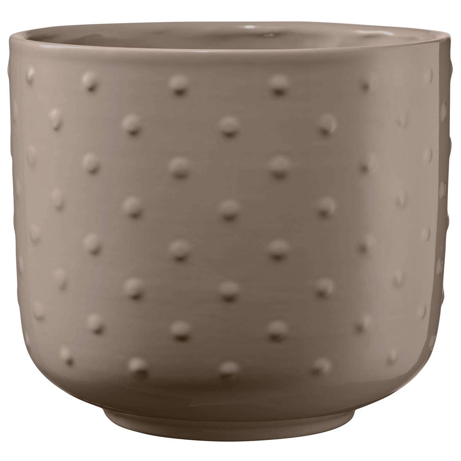 Modern shape with an attractive pearl relief impresses with its glazed color nuances. The base of the vessel has an uplifting effect on the plants and provides special highlights. Homely colors on an attractive pearl relief surface create a cozy atmosphere. Tall green plants such as zamioculcas or peace lilies. Pots do not have draining holes, so no worry of damage to furniture 100% waterproof pottery 100% rainwater is used in production of all SK pottery Clay residue is recycled back into production Pots are in a kiln for 5 hours at 1872 degrees Fahrenheit