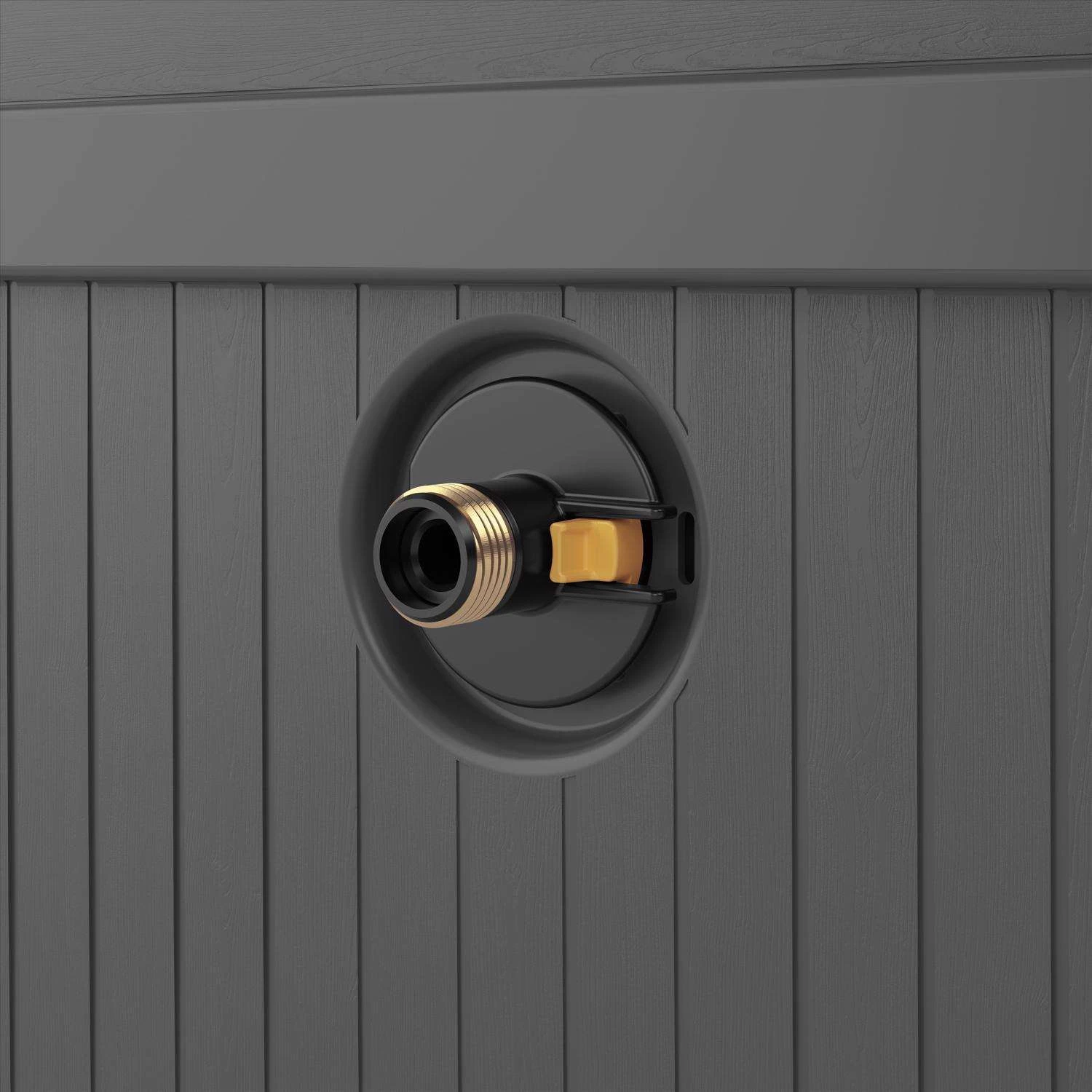 The clean look and easy function of this hose hideaway is sure to please even the pickiest gardener. Capable of cleanly concealing and storing up to 225 ft. of standard hose. Smart Trak hose guide allows you to automatically rewind your hose evenly on the reel without getting your hands dirty. Plus, the Smart Tube brass connections offer a leak-free guarantee that will resist cross-threading and corrosion. Built of durable resin construction, this low-maintenance hose reel is the perfect storage solution. Holds up to 225 ft. of 5/8 in. standard vinyl hose No assembly required Conveniently conceals and stores garden hose