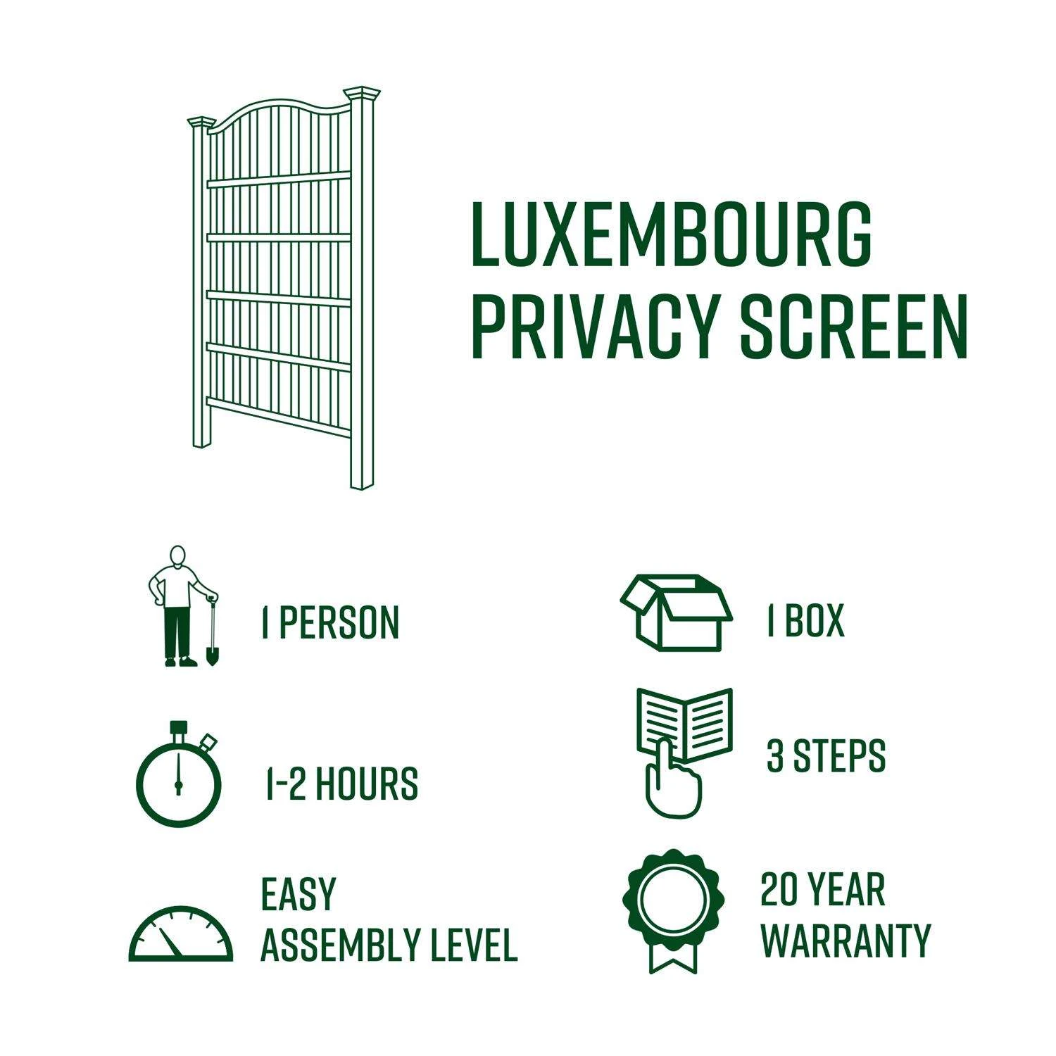 The Luxembourg Privacy Screen is perfect for creating an elegant outdoor hideaway or screening an unwanted view. The traditional lattice grid supports climbing flowers and plants to create a dynamic accent wall, boundary marker or to tastefully hide an AC Unit or garbage enclosure. Crafted with premium weather-resistant vinyl, the Luxembourg Privacy Screen is maintenance-free and built to last. Simple to assemble and install and comes with a 20-year warranty. Attach the Luxembourg Privacy Screen to the Barcelona Planter Box to enable you to position the screen anywhere you choose. Material: Crafted from durable BPA/phthalate-free vinyl Lattice detail to support your climbing plants and flowers Maintenance free: Easy to maintain and clean 20-year warranty against material defects
